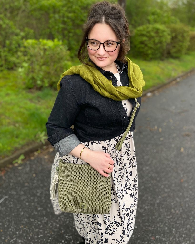 Die perfekte Mischung für Frühlingstage: Ein leichtes Kleid, eine gemütliche Jeansjacke und farbenfrohe Accessiores.